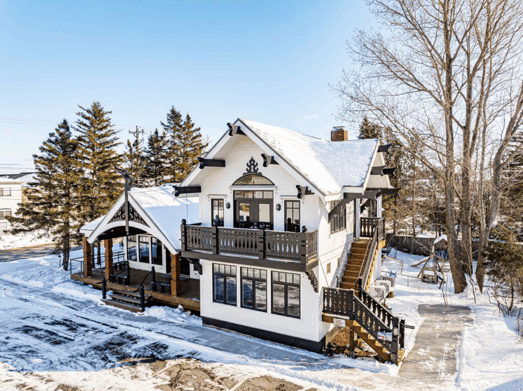 The influence came directly from the dragon inspired house on Park Point (Pictured Above). That home, built in the early 1990s, was designed with inspiration from “Dragestil,” a Scandinavian architectural style popular in the late nineteenth century. The style is known for its intricate details, dramatic rooflines, and dragon shaped finials that decorated churches, boathouses, and other community landmarks in Norway & Sweden.